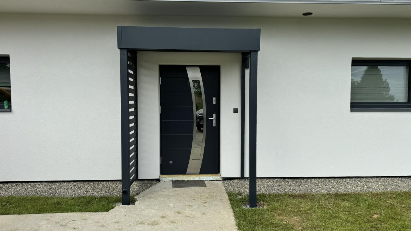 To praktyczne i stylowe rozwiązanie, które zapewnia ochronę przed deszczem, śniegiem i słońcem, jednocześnie podkreślając wygląd wejścia do budynku.